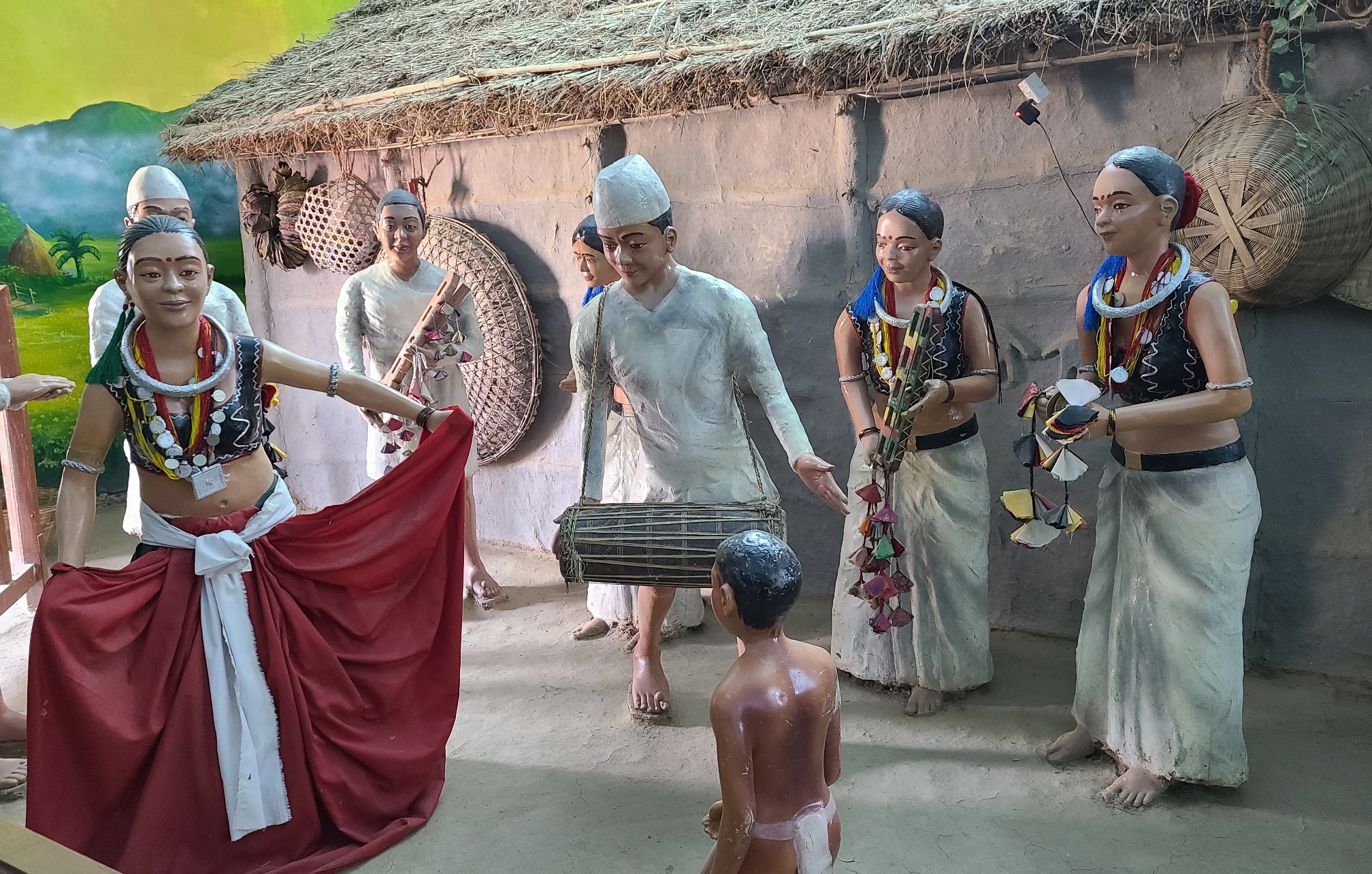 सँगसँगै थारू राजा दंगीशरणको आकृति र घोडाघोडीको मूर्ति। खोलामा माछा मार्दै गरेको परिदृश्य। मघौटा, छोक्रा, हुर्डंग्या, लठ्वा तथा बर्का लगायत नृत्य झल्किने कलाकृति।