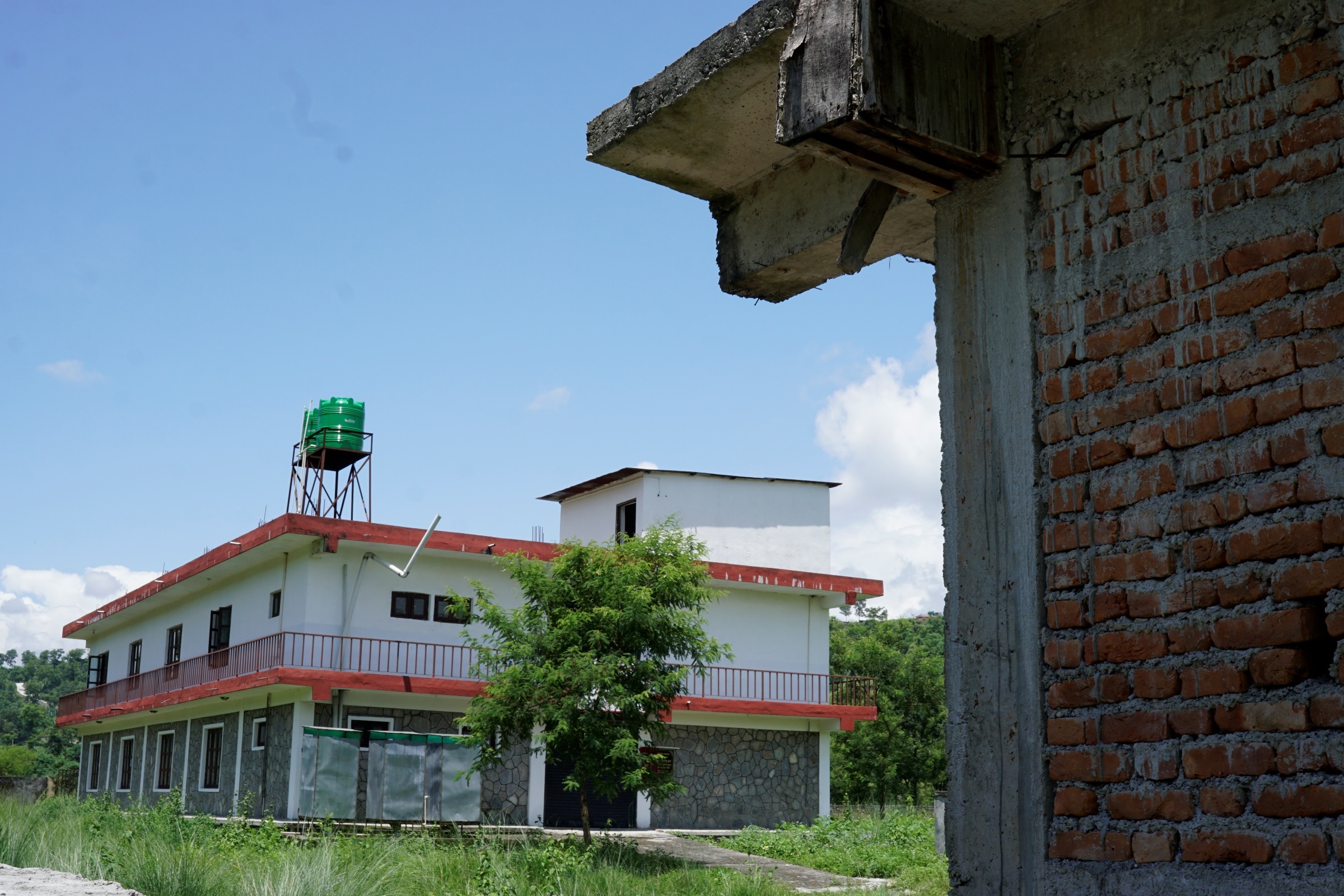 कपासे बस्ती कटेपछि अन्तिममा आउने पुन:स्थापना केन्द्रमा कालो रङको मूल गेटमा ताल्चा लगाइएको छ। भवन अघिल्तिरको खुला चौरमा निर्माण सामग्री छरपस्ट छन् भने झार उम्रेर झाडी बनेको छ। दुई भवनमा ठडिएका पिलरमाथि ढलान गरिए पनि गारो लगाउन बाँकी नै छ।