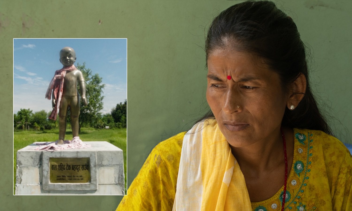 टीकापुर घटनामा ज्यान गुमाएका नाबालक टेकबहादुर साउदको शालिक।