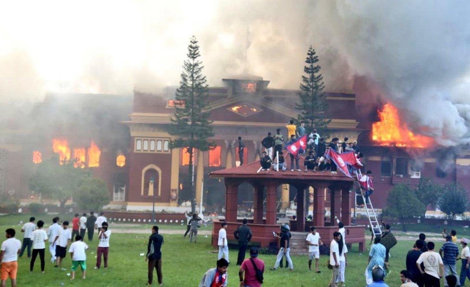 आन्दोलनका क्रममा भएको आगलागीबाट क्षतिग्रस्त सर्वोच्च अदालत।