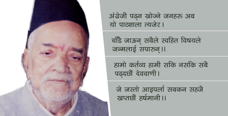 यो पनि हुनसक्छ, कि एकै भान्छाका खूब मिल्ने मामाको छोरा मोहननाथ पाण्डे (१९३९) आफ्नो पाठशालाबाट भागेर अंग्रेजी स्कूलमा पढ्न गएको घटनाले आहत नयराजले त्यसपछि पो यो श्लोक रचे कि?