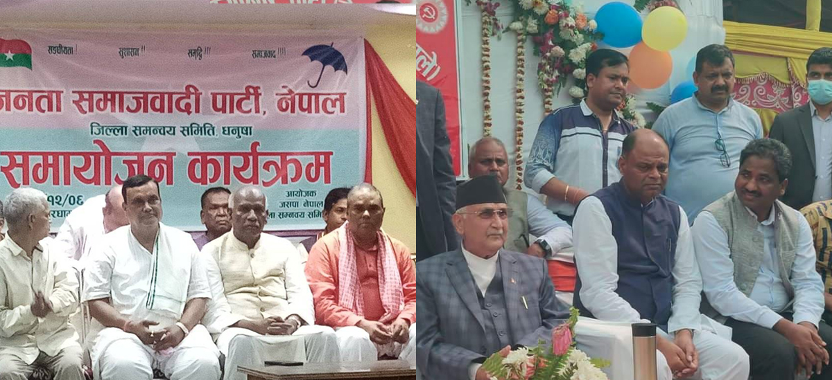 यस्तै, नेकपा (एमाले) ले पनि स्थानीय चुनाव केन्द्रित भएर मधेशमा कार्यक्रम थालेको छ। केही दिनअघि एमाले अध्यक्ष केपी शर्मा ओलीले वीरगञ्जका मेयर विजय सरावगीलाई पार्टीमा स्वागत गरे। यससँगै एमाले नेताहरू अन्य दलका कार्यकर्तालाई पार्टी प्रवेश गराइरहेका छन्।