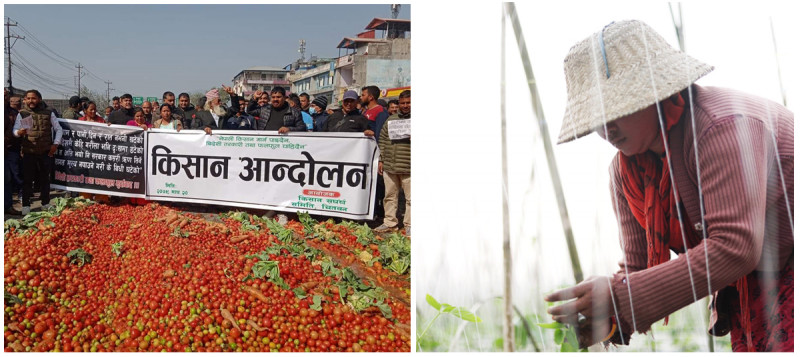 विचौलियाकै कारण कृषक मर्कामा परेको संघर्ष समितिका सदस्य सुमन गुनासो गर्छन्। केही दिनअघि चार ट्रयाक्टर टमाटर सडकमा घोप्टाएका उनले माघ २५ मा मात्रै २५० रुपैयाँ क्यारेटले टमाटर बेचे। जसको मूल्य प्रतिकिलो १० रुपैयाँ हुन्छ। यसमा लगानी पनि उठेको छैन।