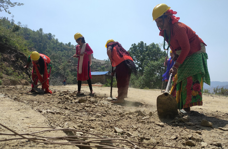 कालिकोटमा सिंचाइ कुलो निर्माणमा श्रम गरेर महिलाहरूले आम्दानी गरिरहेको जुम्ला पुगेरै थाहा पाएँ। त्यसपछि कालिकोट पनि पुगें। गाउँका धेरैजसो पुरुष कमाइका लागि भारत र अन्य ठाउँमा गएका कारण स्थानीय स्तरमा पक्की कुलो, ढल, भवन आदि निर्माणका काम हुँदा महिलाले कामको अवसर पाउने गरेका रहेछन्। विगतमा पुरुषले मात्र गर्न सक्ने मानिएका यस्ता काममा उनीहरूले आफ्नो क्षमता सावित गरिरहेका पनि देखियो।