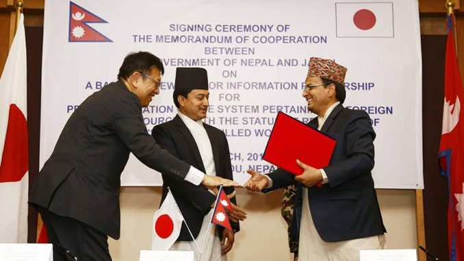 जापान सरकारको क्याबिनेट बैठकले १० पुष २०७५ मा पाँच वर्षभित्र नेपालसहितका नौ देशबाट विभिन्न १४ क्षेत्रमा करिब चार लाख कामदार (ब्लू कलर वर्कर) लैजाने नीति पारित गरेको थियो ।0.